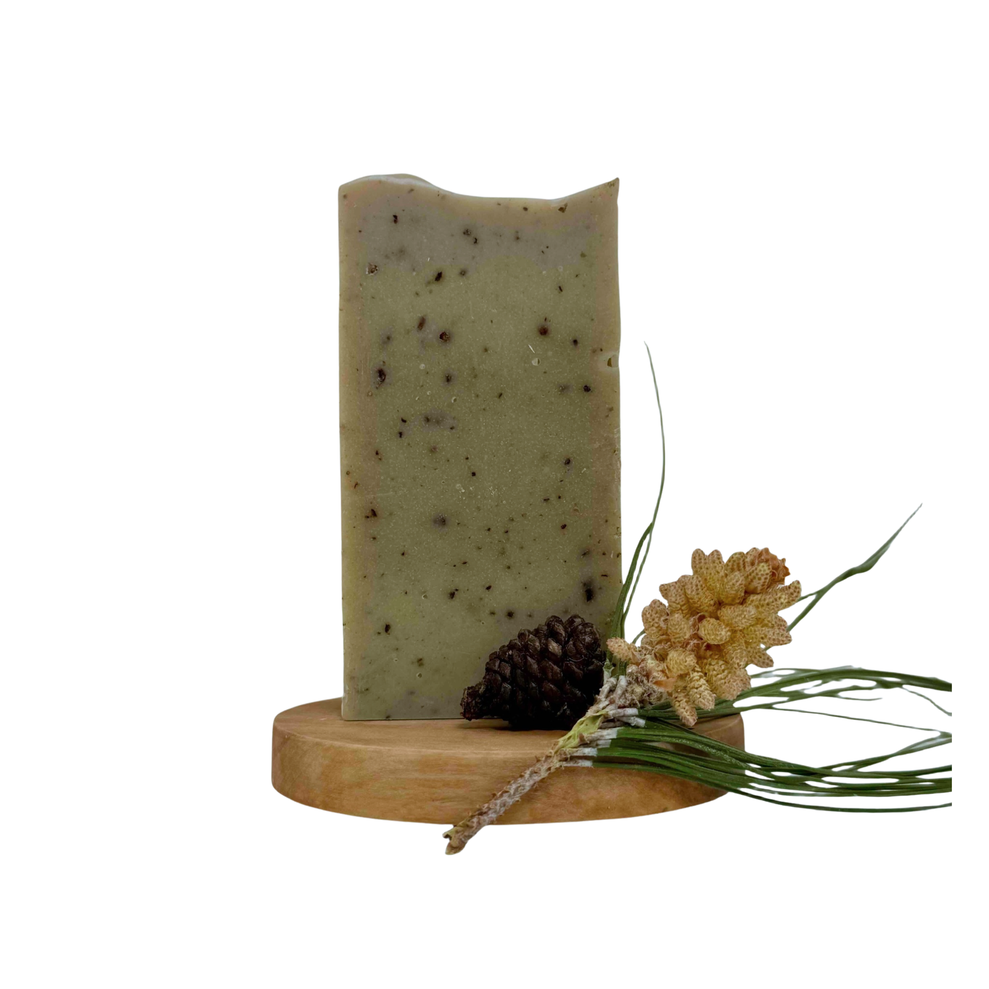 Whispering Juniper is a refreshing botanical soap colored with spirulina and accented with crushed juniper berries. Scented with peppermint, rosemary, spearmint, and juniper berry essential oils, this nourishing bar gently cleanses while helping maintain the skin’s natural moisture balance.